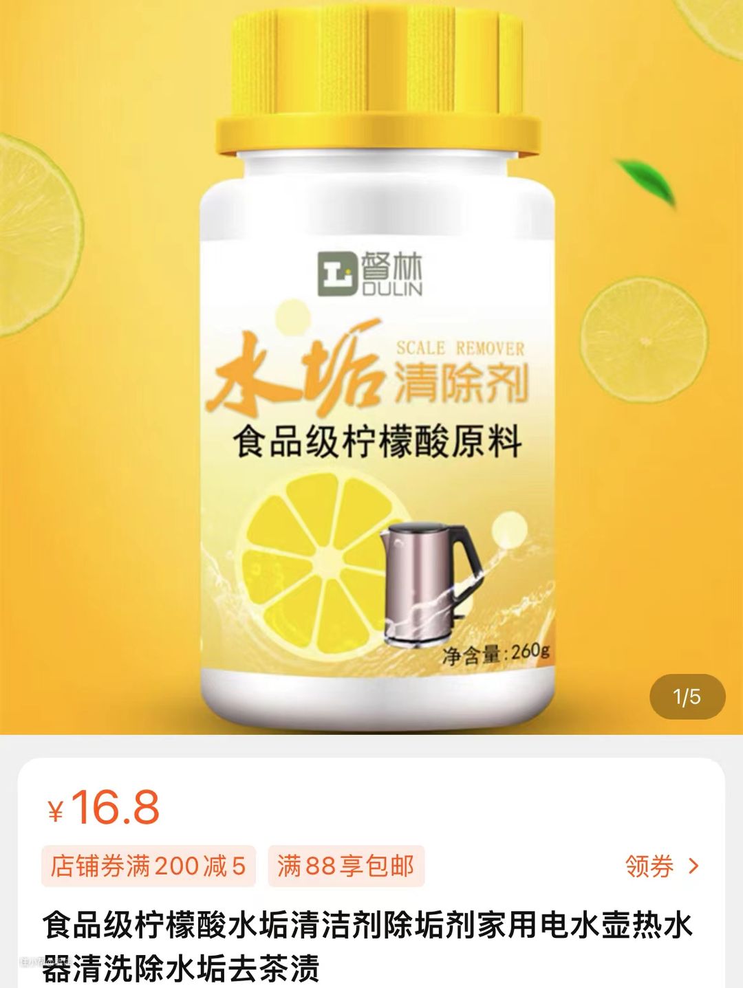 与其花大价钱去买个单一用途的东西,不如直接买柠檬酸更来得划算,价格仅是它的1/3。