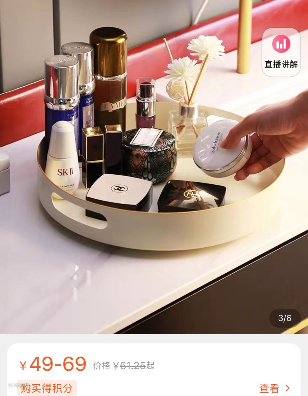 家里化妆品多,不好摆放,用这种旋转收纳盘,就把问题解决了,大的小的都能放进去,拿取的时候转一下就好了,不存在里面拿不到的问题。