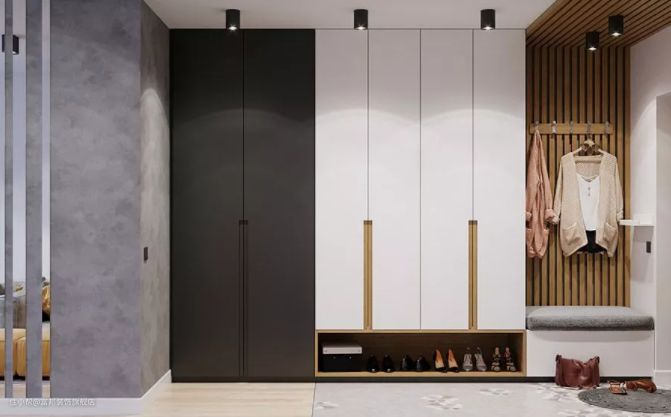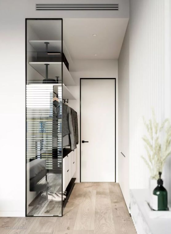 可以在门厅的位置,设计一个小小的衣帽区。这样在进门的时候,可以方便把外套,包包这些东西直接放置上去。这样在进出门的时候,就可以很方便的拿去包包或换衣服等。