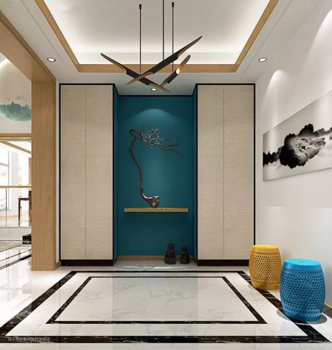 刚前面说到的,基本都是门厅的收纳功能。其实考虑完收纳功能之后,就要考虑美观。因为门厅是屋内视觉效果的一个分区,这个门厅就是家和外面的区别,好像和主人说,欢迎您回家。所以可以在门厅与室内的交界处,设计一些好看的垭口,这样会有一种“仪式感”,让家更加的美观,生动起来了。