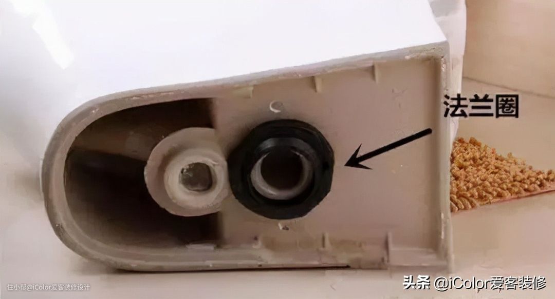 3、有些施工人员不专业,安装马桶时没有安装法兰圈,或者安装时没有固定好位置,就很有可能出现马桶底部渗水的现象。可能很多朋友对法兰圈这个名词还不太熟悉,其实就是密封圈。作为连接马桶出水管与地漏出水管的纽带,它起到密封、防臭、防漏、抗菌等重要作用。