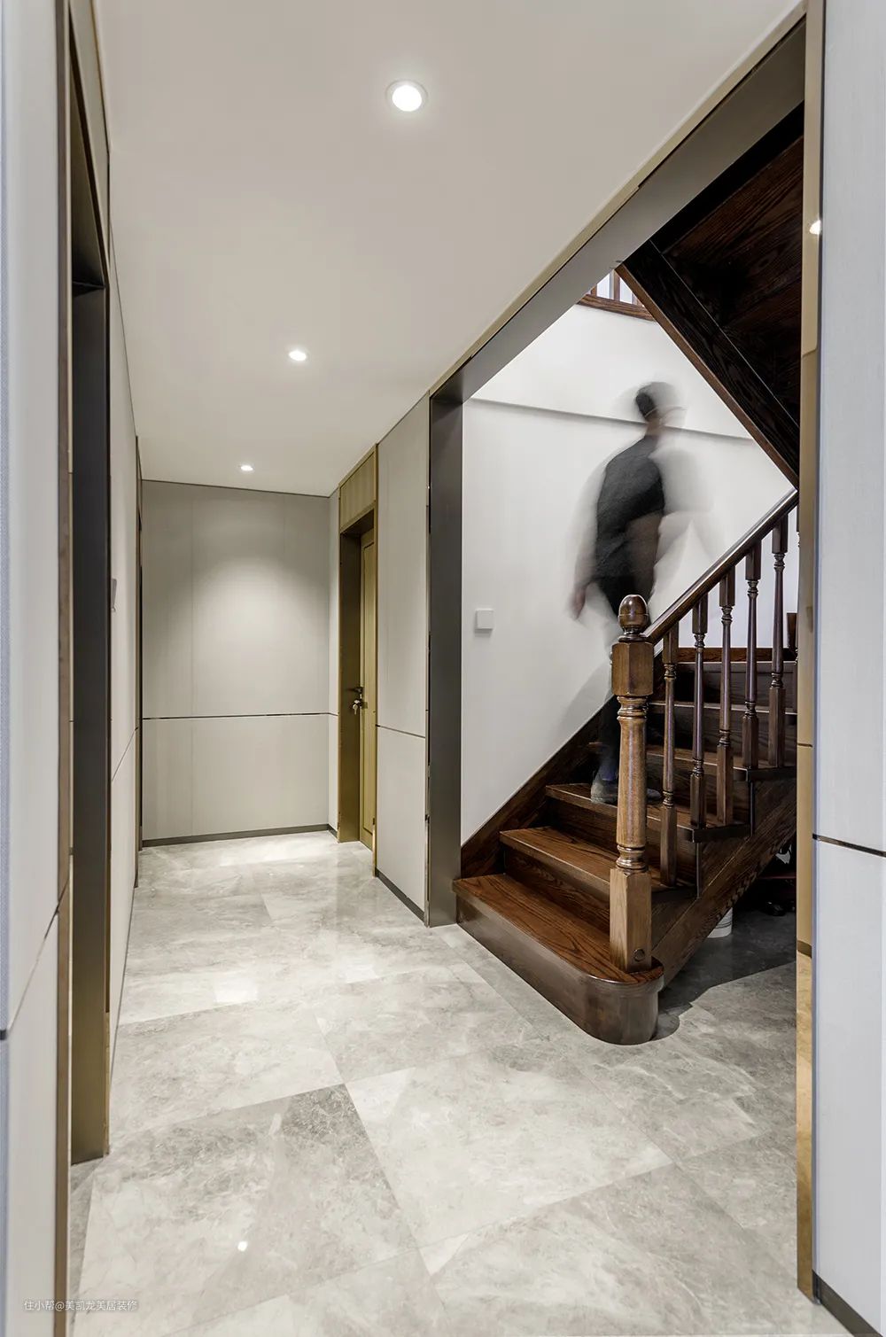 入户门外延,楼梯藏在端景墙后