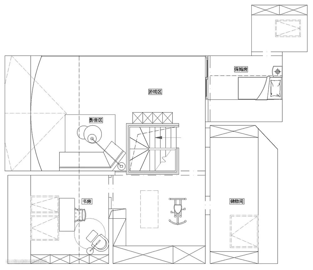 √ 阁楼规划五大功能区:儿童游戏区、影音区、书房、保姆房、健身区,动静结合,满足一家人的不同需求;