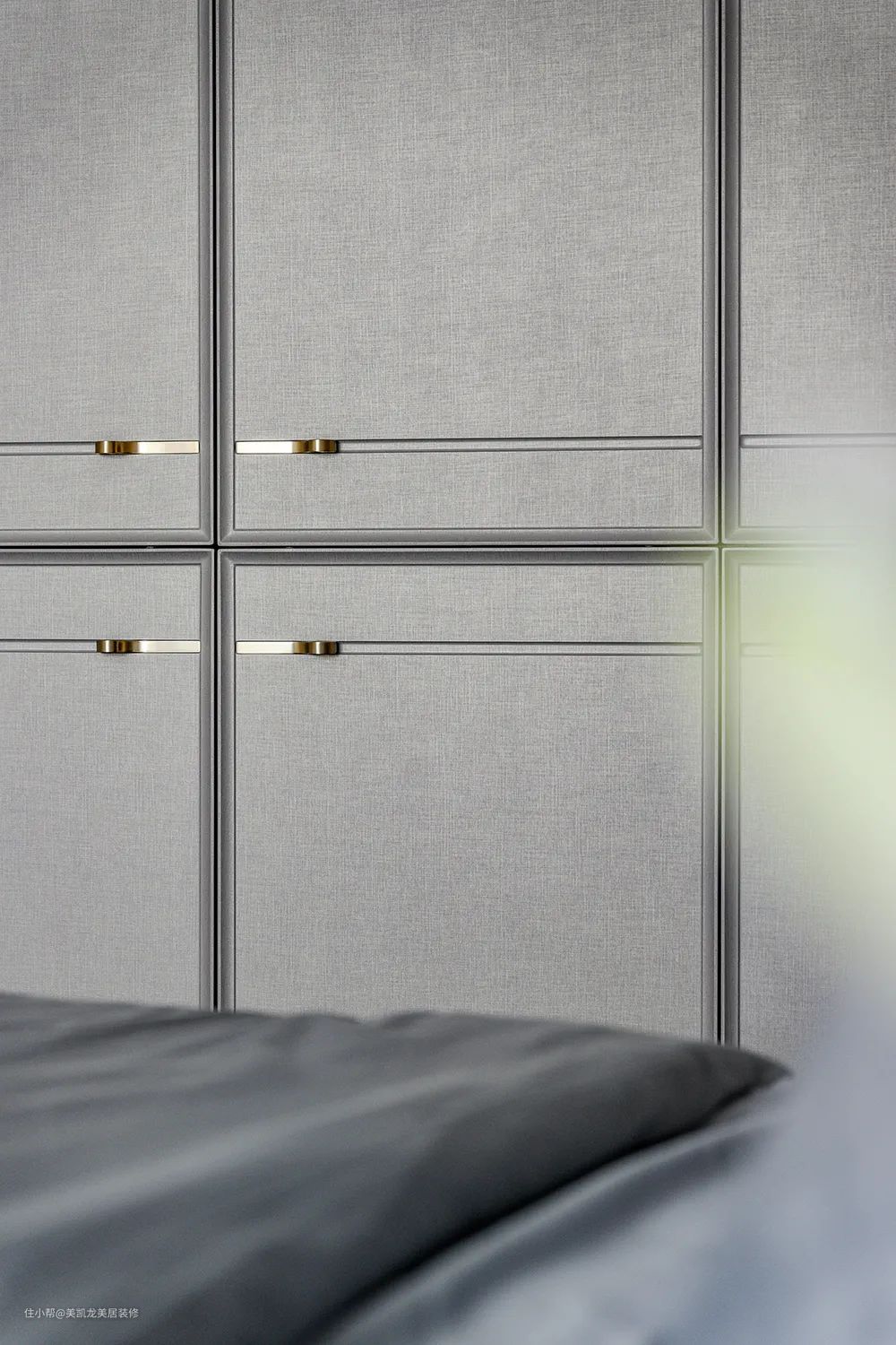沉稳、温润是主卧的旋律,低调的棕与深邃的灰,达到微妙的平衡,冷静但又带着温暖,线条的组合,勾勒出空间的艺术美感。