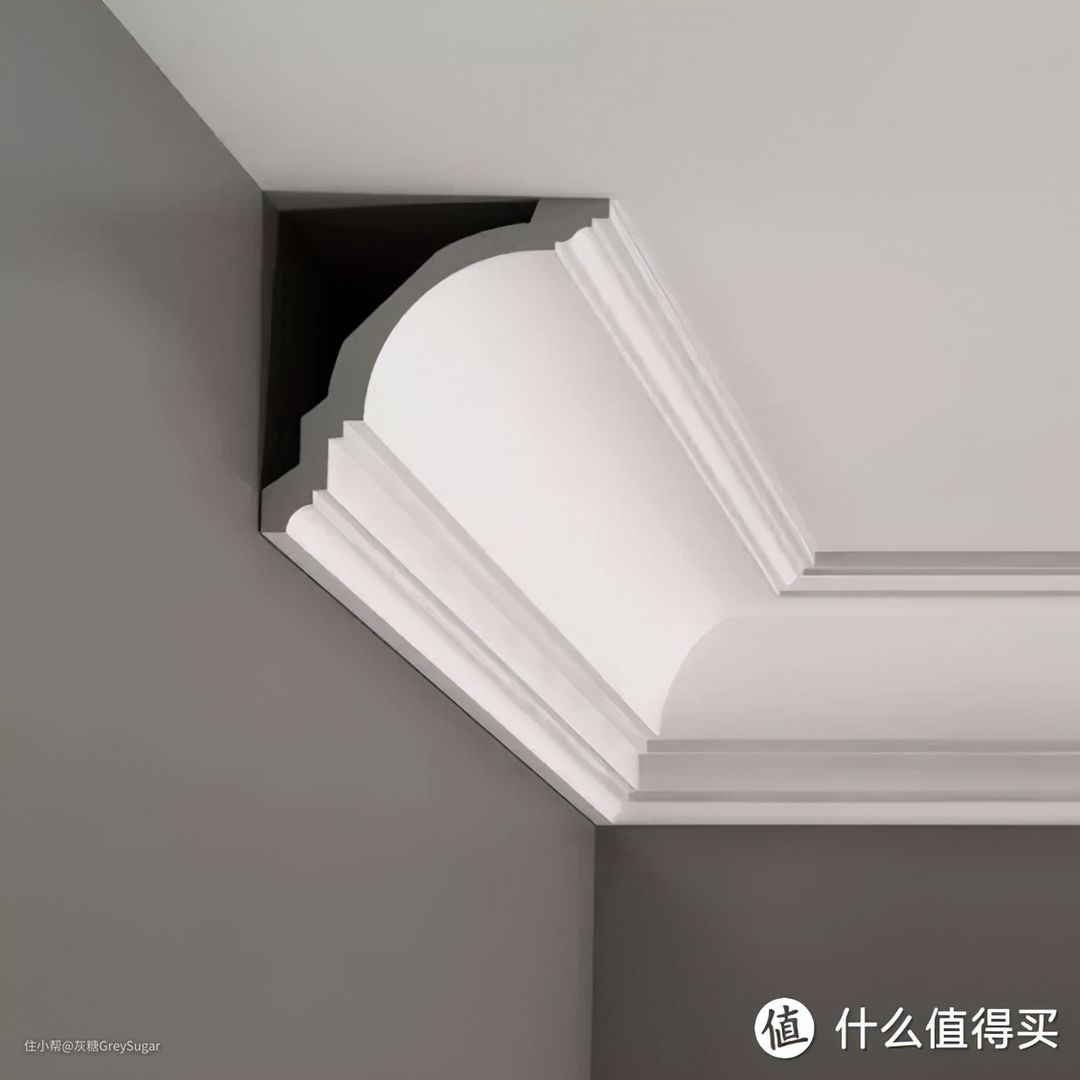不同样式的顶角线带给空间的整体效果是完全不一样的,所以大家根据自己家的风格进行选择就好啦~打个比方,如果家里面是温暖调或者想要温和线条的,可以选择这样圆弧状的顶角线,让整个空间的线条更圆润和柔和。