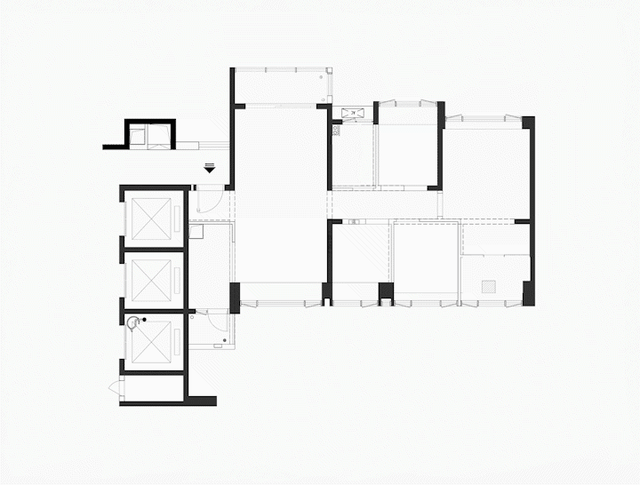 ①增加厨房空间,把厨房向阳台延伸,增大了厨房面积。