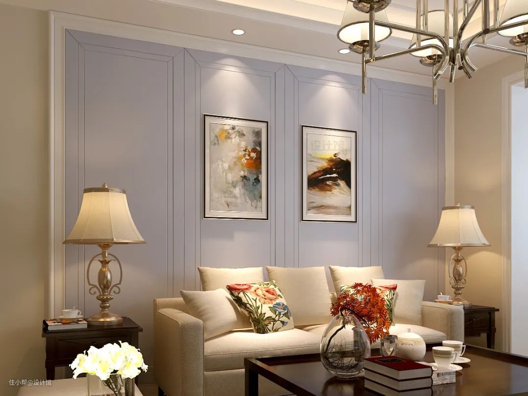 ▲背景墙的挂画,有射灯烘托会更加美观。