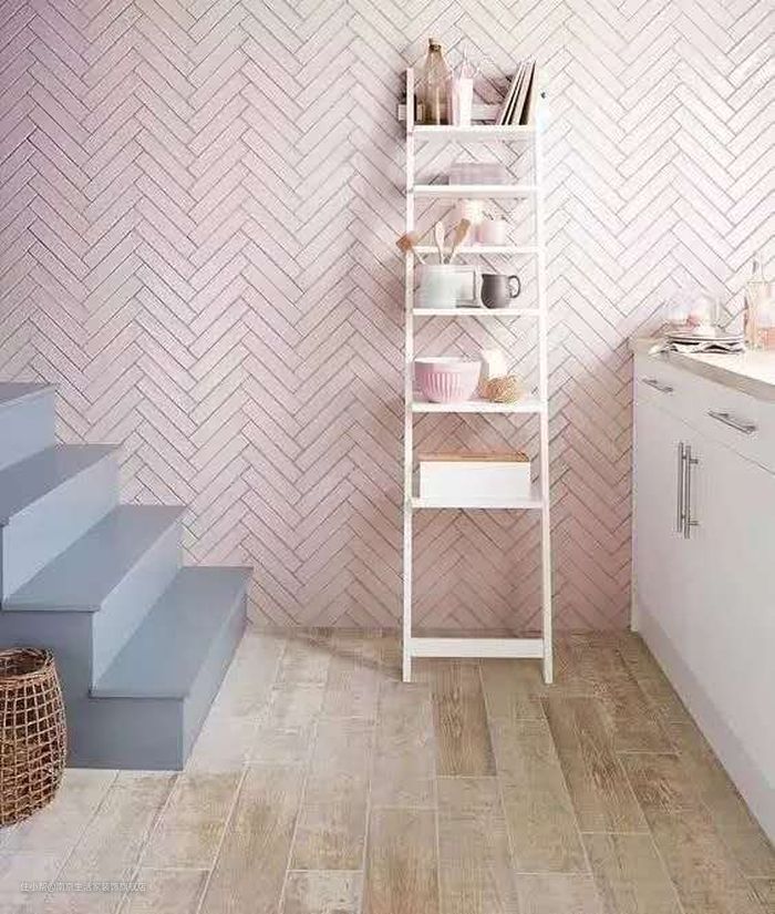 2、小面积的混搭砖和主砖颜色要搭配,尽量选择互补色点亮空间。