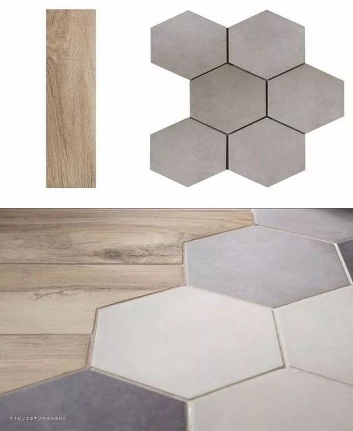 混搭铺法是将地板与瓷砖、水泥混搭的铺法。混搭铺贴法比较前卫,一般用来分区或增加艺术美感。常用在特殊的小空间,例如阳台、玄关、卫生间、厨房等。