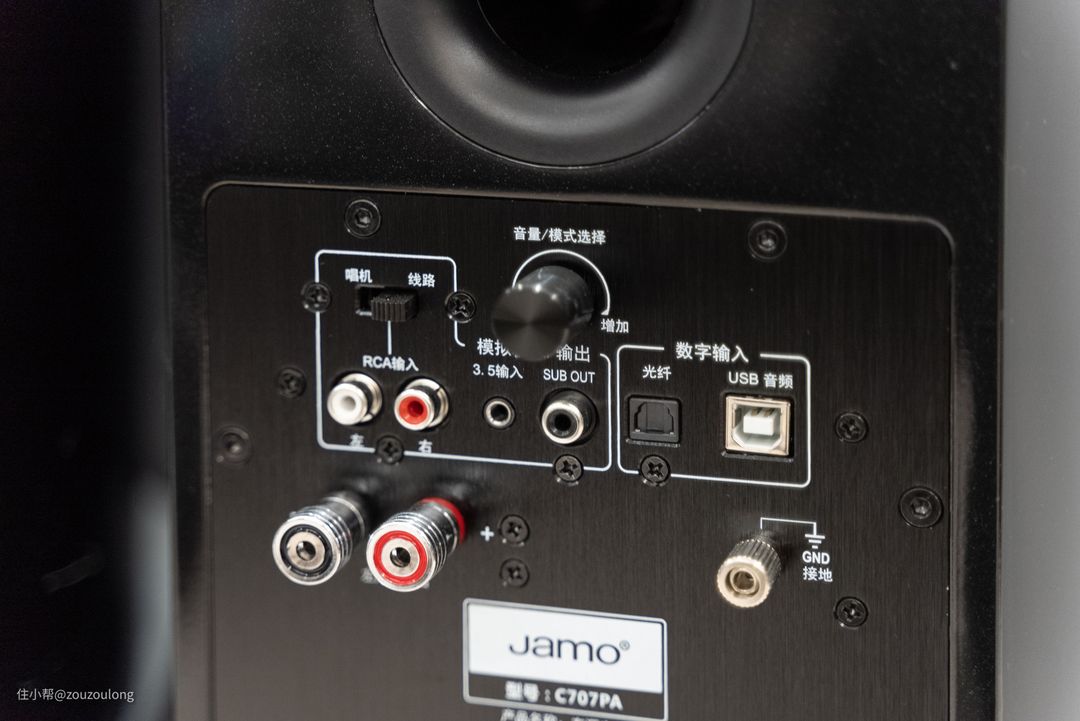 然后就是声音特别干净,其他两组音箱在有线连接情况下,多少总有一些底噪,尊宝C707PA的出声却比较纯净,这可能跟它的长冲程着环带来的效果有关。