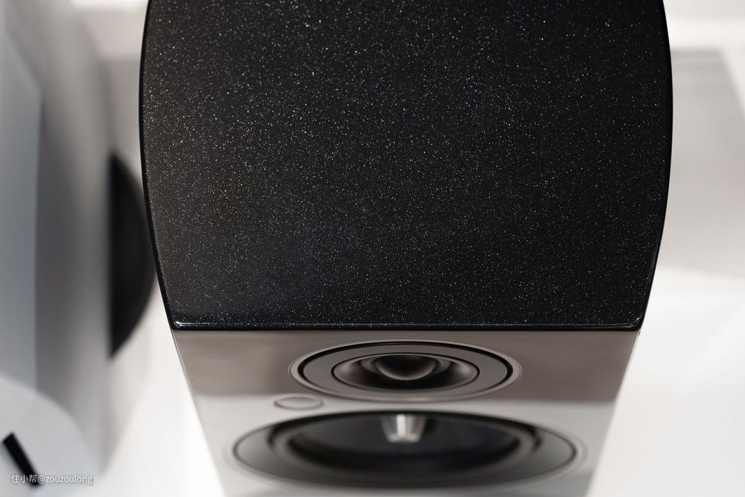 这款音箱外形采用经典的弧形设计,拥有多种个性配色(英国绿/保时捷蓝/北欧灰/中国红等),可以与各种风格家装进行搭配,但我还是保守的选择了一直很喜欢的金属黑配色。值得一提的是,高光钢琴烤漆面采用了镀晶工艺的处理方式,黑色中带有星光点点感觉,给人低调内敛的高级感,而不会显得乏味单调。