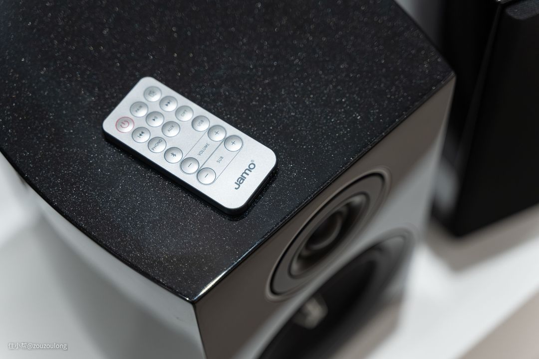 它的尺寸是212×230×295mm(宽×深×高),用来作为桌面音箱,会稍显大一些,适合房间空间比较大的桌面,它也是支持低音炮拓展连接组成2.1系统。