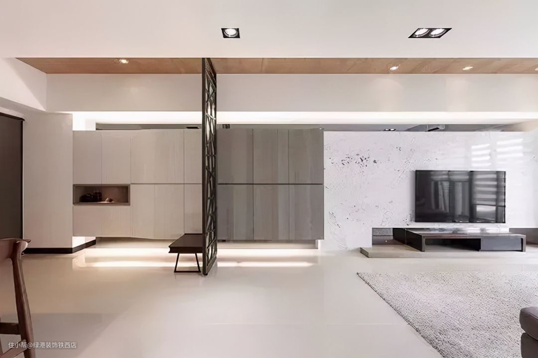 但并不是每一种户型都适合用鞋柜来当玄关,也不是每个户型都可以用这种方法来化解尴尬,不是每一种开门见厅的户型,都可以通过设计一个假玄关来化解的。有些客餐厅连在一起的户型,有很强的空间感,可以贴墙设计一整排柜子,这样不仅实用,而且非常节省空间。