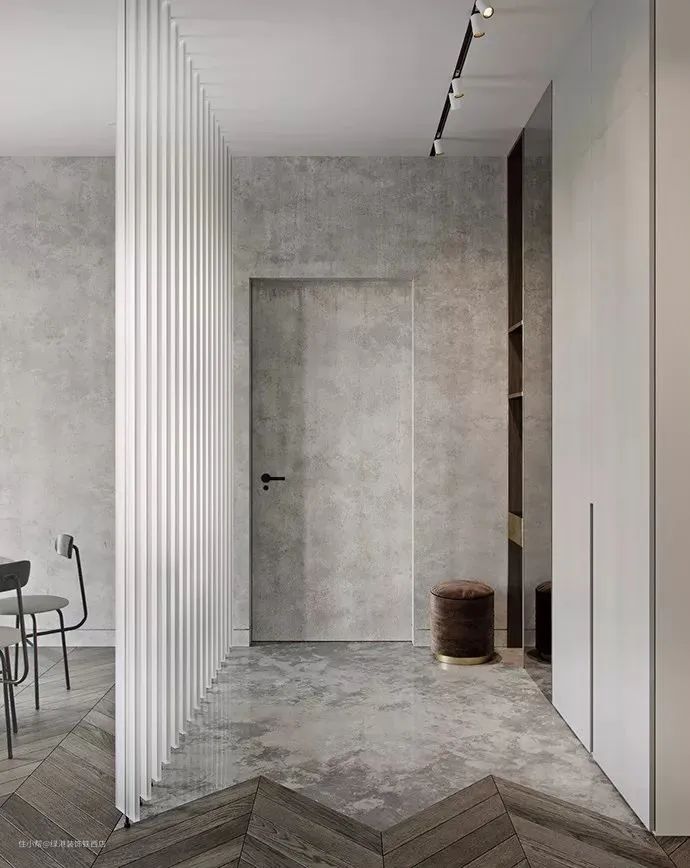 鞋柜放在进门位置是共识,因为进门就得换拖鞋,鞋柜放得远很明显就不合理也不方便。专业上讲叫「动线最优化」,也就是人在家里活动的路线越短越好,越顺越好,这是判断室内设计好坏的标准之一。