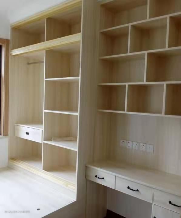 选择这种方式的优点有:质量有保证,因为板材,五金配件等材料都是自己挑选的,我们选择板材可以多用木芯板和指接板制作,材质更有保证。实用性强,木工现场制作,可根据我们自己的实际需求设计,因此尺寸大小不满意的都可以更改。制作周期也没有很长,想一般家庭的话柜子两三天之内木工就可以搞定,涂漆神马的加起来一个星期左右。