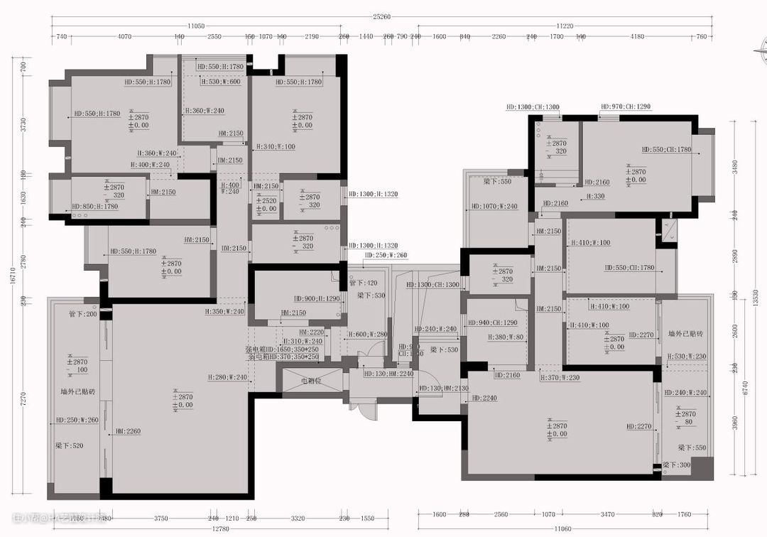 业主所选购的房屋较为规整,空间的划分也基本能够满足业主的大部分需求,因此设计师无需对房屋墙体进行大的修改,可以直接对空间布局进行设计。