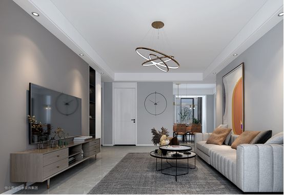 客厅可选择的主灯,种类非常多,常见的有吸顶灯、分子灯、水晶灯、环形灯等等,选择搭配的时候需要考虑灯具的造型设计以及与家装风格的和谐统一。例如水晶灯造型比较华丽,更适合美式或者欧式等家装风格;分子灯变化多端、造型简约,更适合现代、北欧等家装风格;环形灯大气时尚,与轻奢风格很搭。