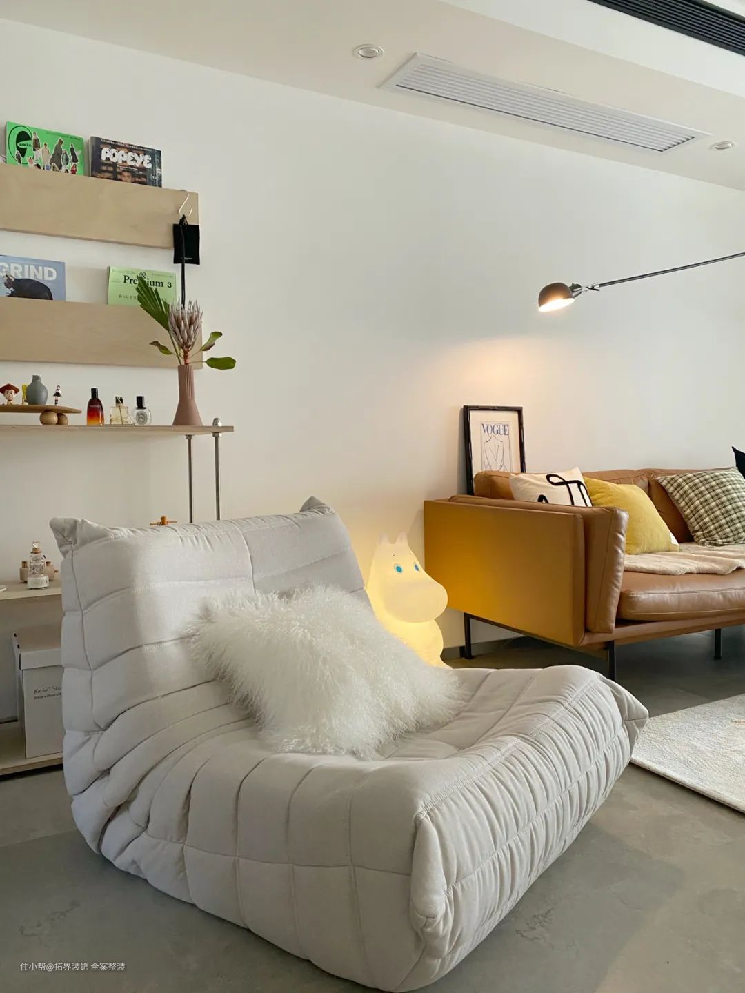 本来就小的空间更要懂得留出空白空间,不能用家具把整个空间都占满,这样只会看起来更透不过气。在客厅中,能用单人沙发椅的不要用双人沙发,能用双人的就别用转角贵妃榻。