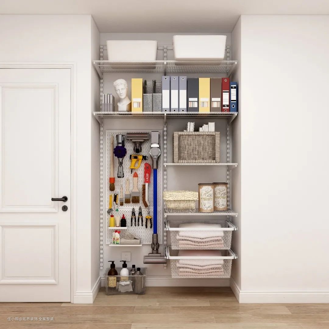 例如行李箱、婴儿车之类的,这些物件不好抬放,放在家里的衣柜中也不合适。而这个储物室,既可以作为堆放杂物的地方,又可以作为收纳衣物的地方。