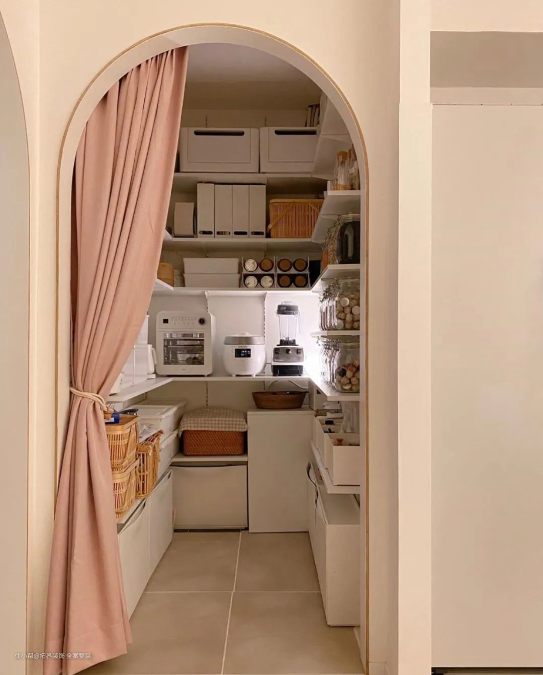家里杂物太多,实在无处安放,想分门别类又嫌太麻烦。那就在家里某个区域安置一个储藏室吧。不需要采光,也不需要太大占地面积,只需把帘子一拉,就轻松get。