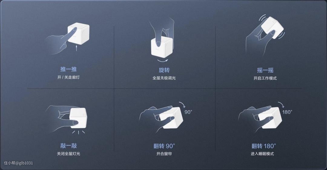 体验上来讲,Aqara魔方用了一段时间之后给我的体验还是不错的。当然最新的使用环境还是放在桌面才会有更好的体验,比如放在床上这样较软的环境下,翻转180°、90°这样的操作的时候灵敏度不太高,如果你是放在卧室使用的话,我建议多配置双击或者摇晃这样的使用场景,这样的使用场景下灵敏度更高。