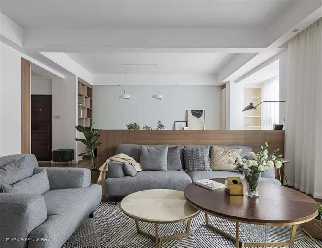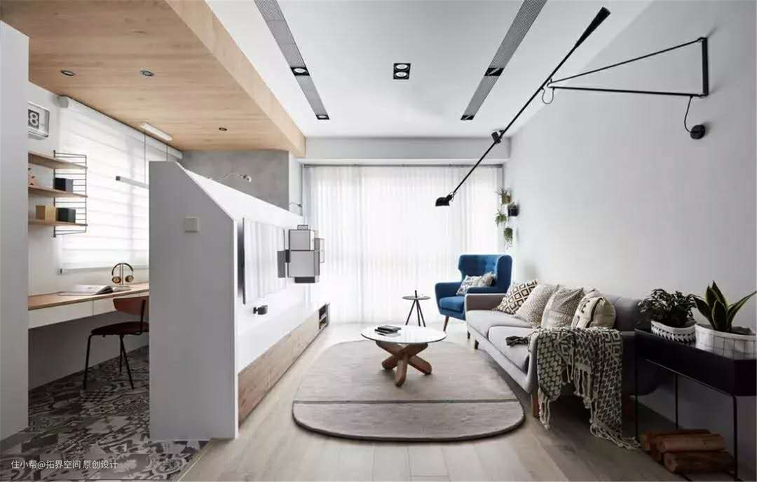 如果横梁刚好在某个空间的交接位置,可以用最简单的方式化解,例如用横梁做门,既能划分层次,又能增加空间的独立性。还能设计电视背景墙,在横梁下方做个电视背景墙,既能丰富空间功能,又能合理地划分了层次。