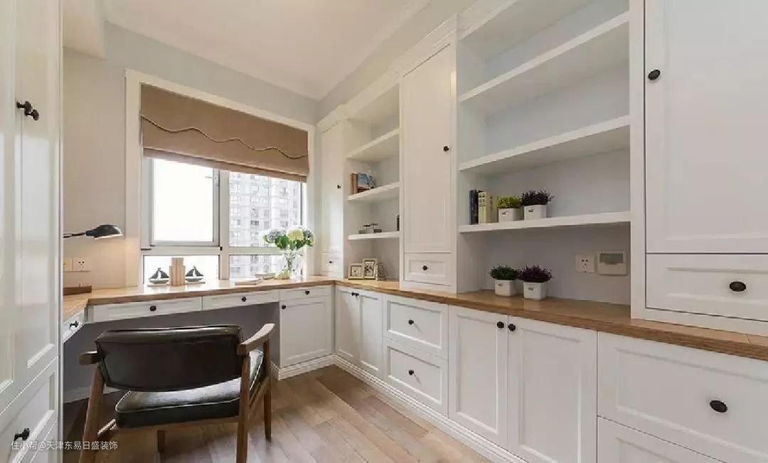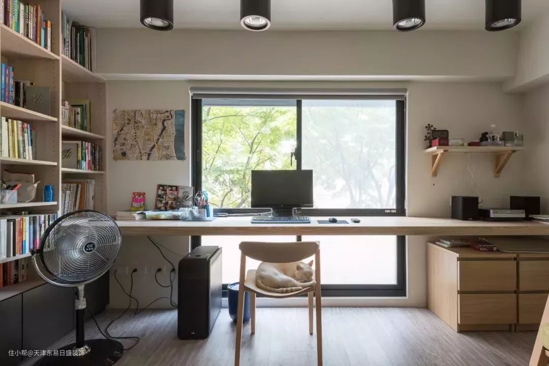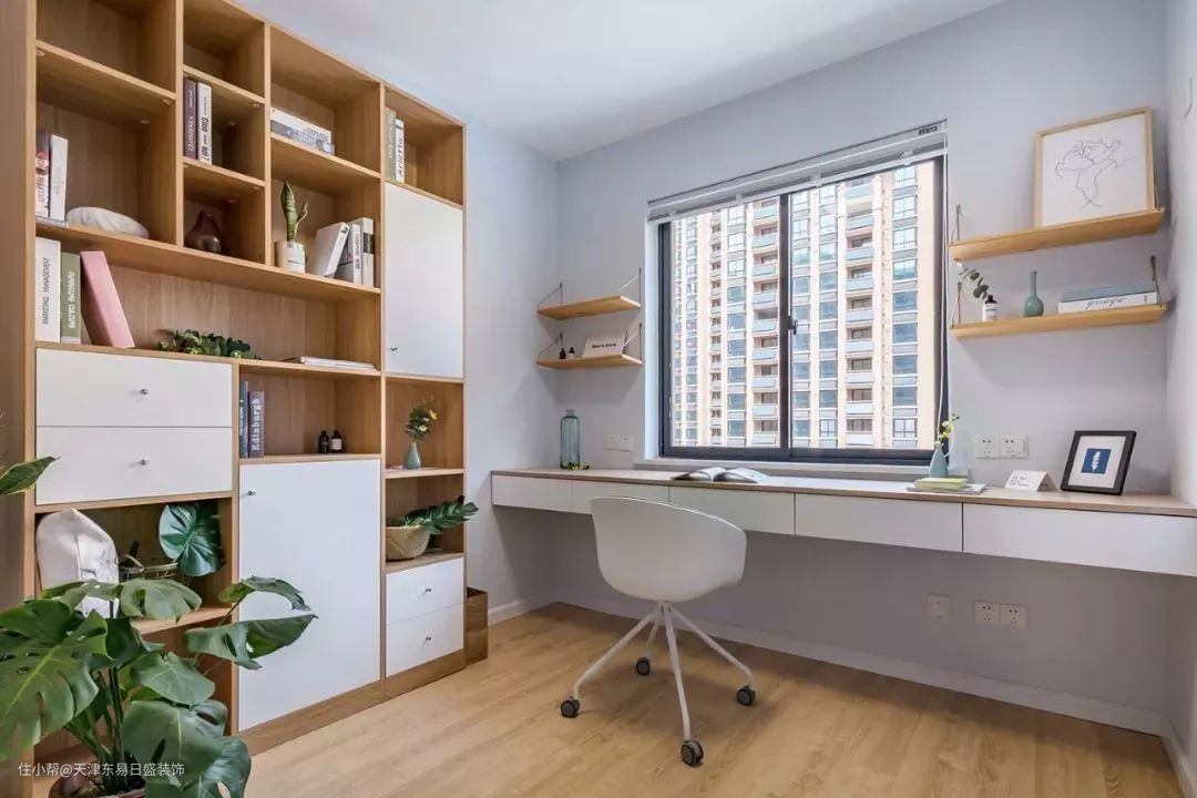 靠窗书桌|喜欢读书的女孩子的理想家~天津东易日盛装饰2021-11-14#带你看!我的理想设计家#靠窗布置书桌的设计,适合开间较大、但进深较小的书房,在窗户旁边布置书桌的书房,书桌台面更加简洁明亮、舒适大方,不过这个情况下,开关窗户的操作可能会有点不太方便。