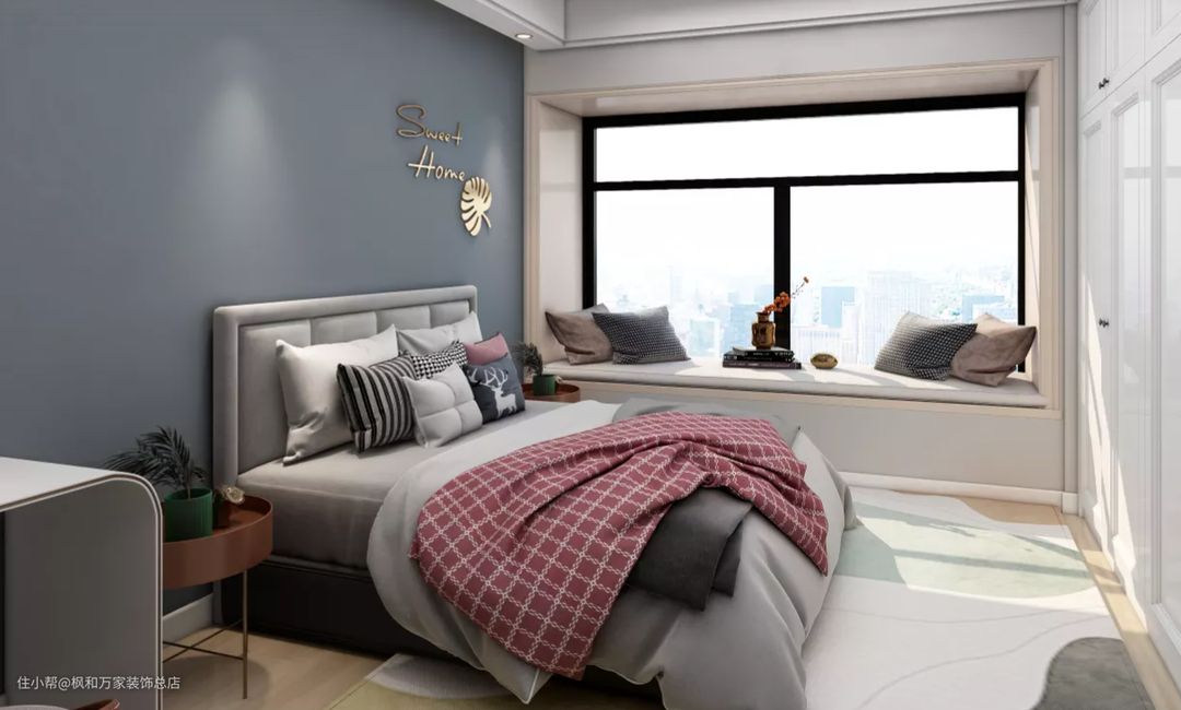 次卧和主卧一个色调,柔软舒适的床上用品,素雅的色彩,让人感觉格外放松,有着很好的舒眠效果。