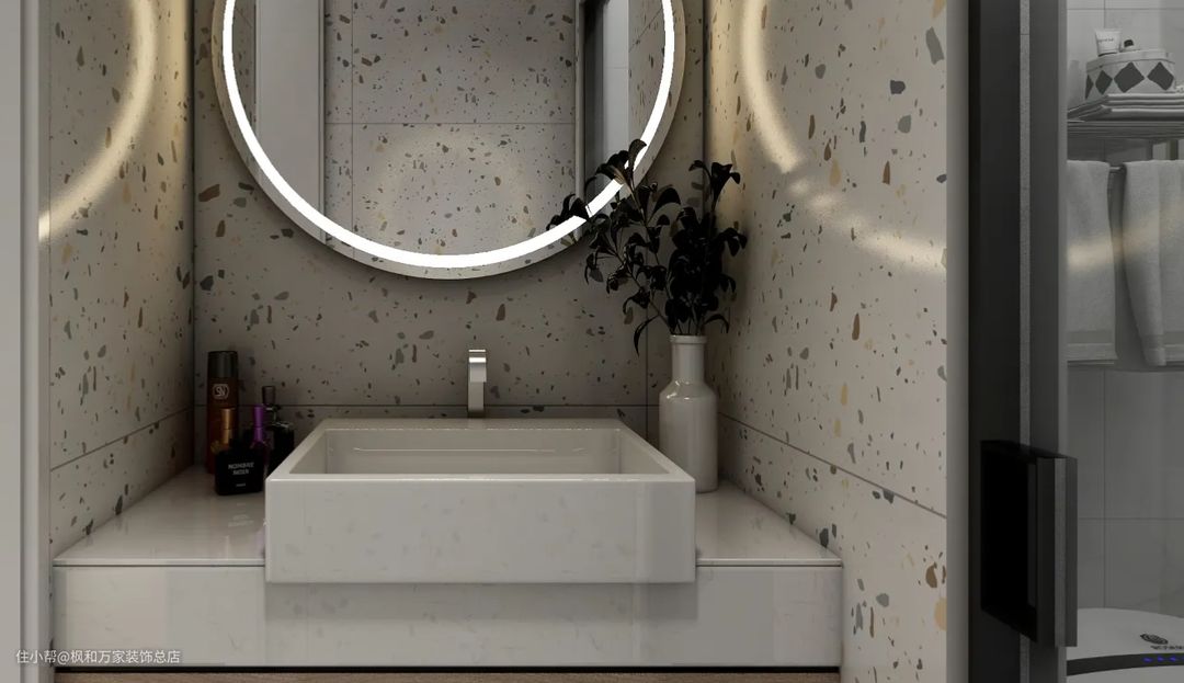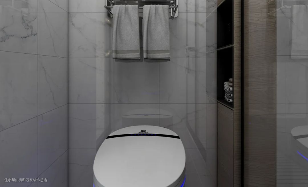 洗手间干湿分离设计,在有限的空间中,合理的规划出独立的大冲凉房。