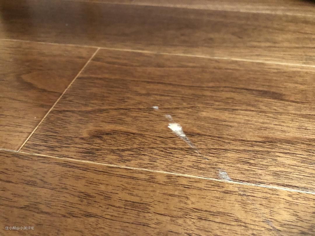 结实,体现在不怕磕碰、刮伤。我曾经在爸妈家的卧室里推了一下床,结果地面上就出现了几道凹陷下去的划痕(庆幸表面的漆没有掉)。木地板太软了,稍微有点撞击就会出现一个坑。