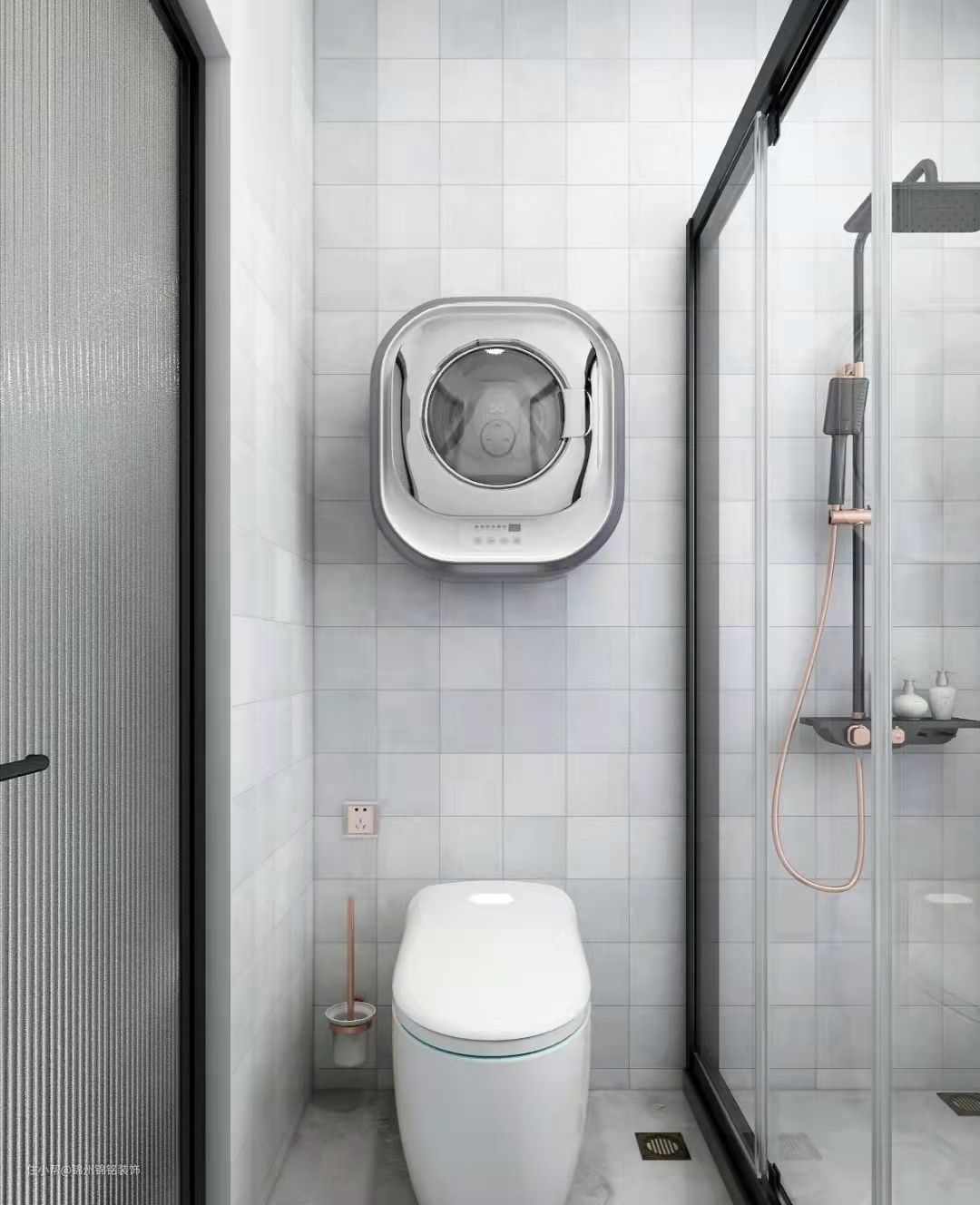 下面放置马桶,上面安装内衣专用洗衣机,或小孩的小件衣服,都很合适。