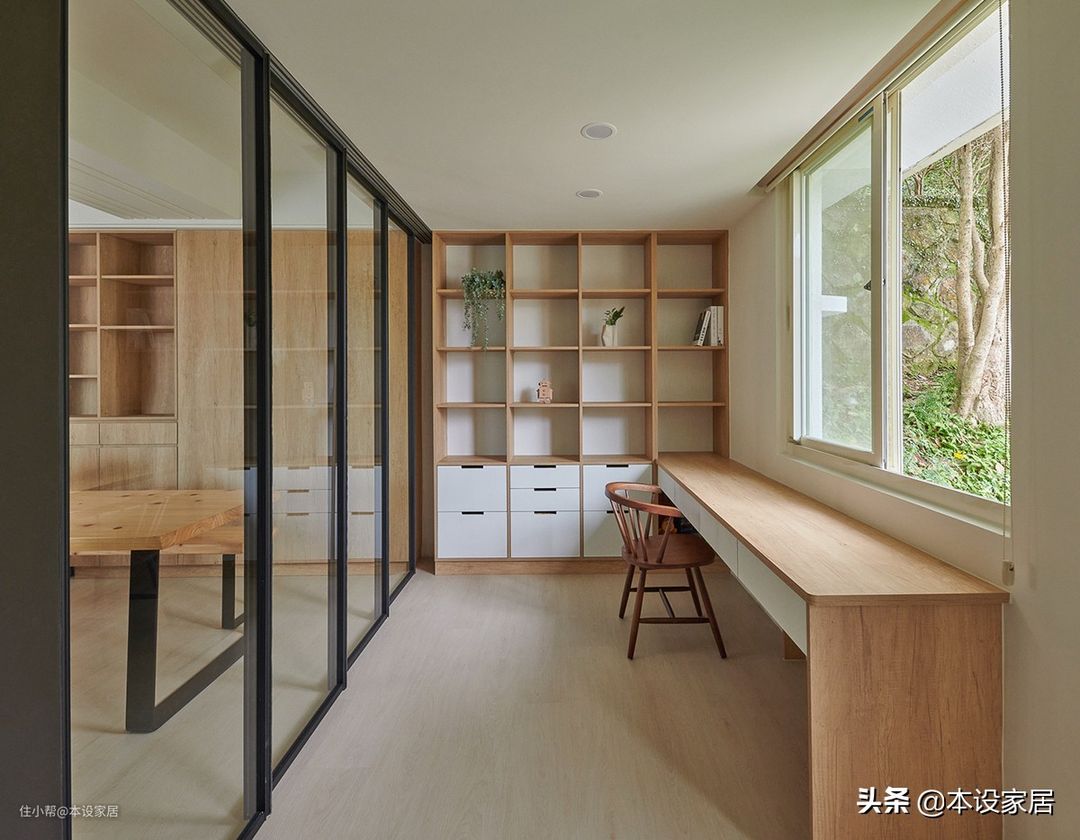 二楼卧室和书房的设计,延续原木白的风格,营造明朗纯净,又不失温馨的格调。同时极致利用窗户,把窗外的自然美景框进室内,感受四季更迭,放松心情,治愈心灵。