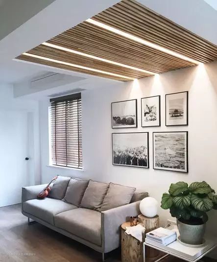 格栅吊顶:用木板做框架,中间嵌入光源,有很好的装饰效果。