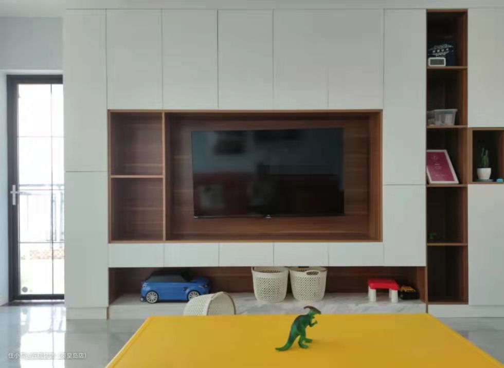 现在很多人装修电视墙的时候,都会选择整面墙都定制电视柜,这样可以为客厅带来充足的收纳储物空间,由于现在的电视机都比较轻薄,并且在定制柜做电视墙的请况电视机一般是采取壁挂安装的方式,定制电视柜的深度做到350mm,就可以收纳大多数的常用物品了。
