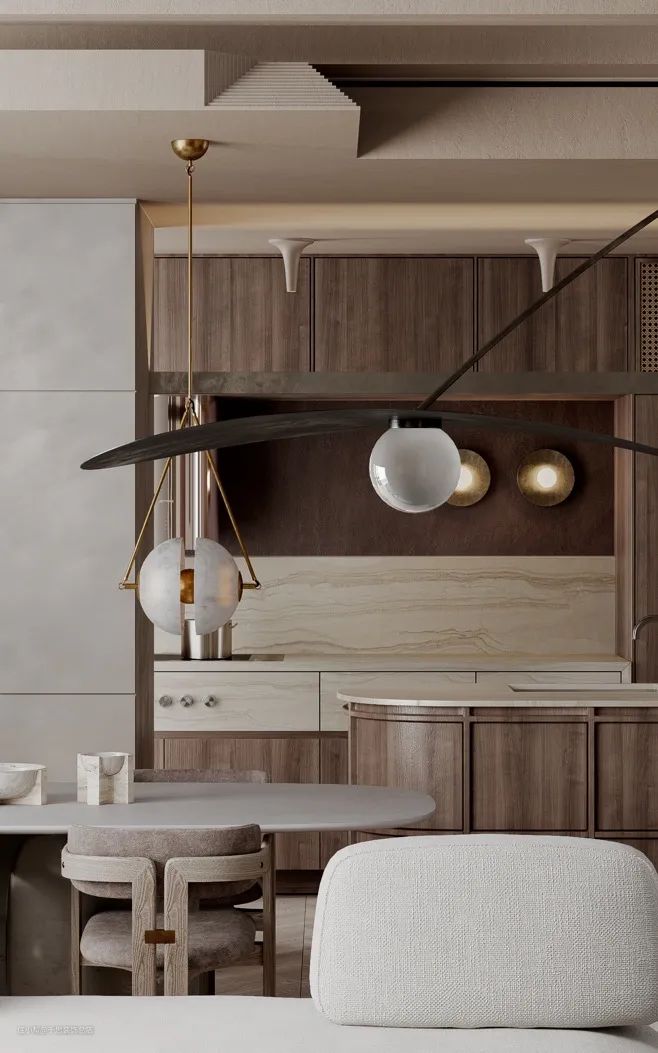 材质混搭:多重材质在同一空间之中实现融合与冲撞,总能带出不同以往的视觉效应。与其独自美丽,不如携手并进,创造出更具个性的美学感知。