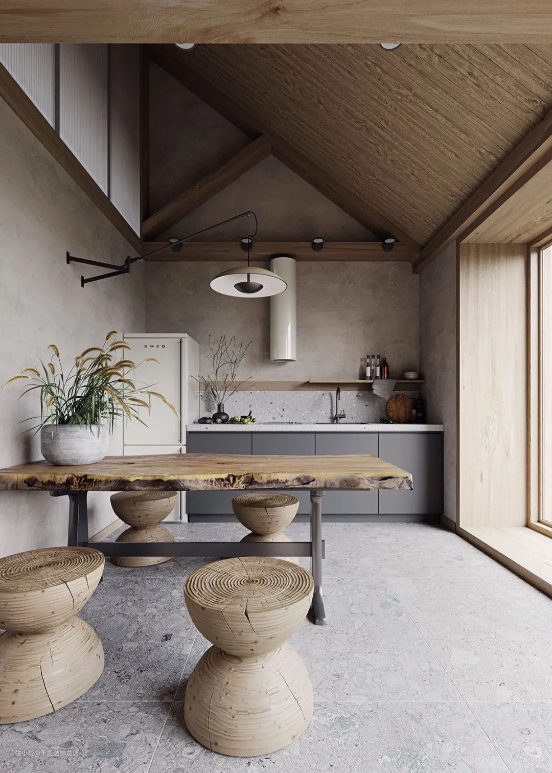 侘寂风以自然为基础,将生活与禅学艺术做了融合,在空间装饰中,传递出干净纯质的理念
