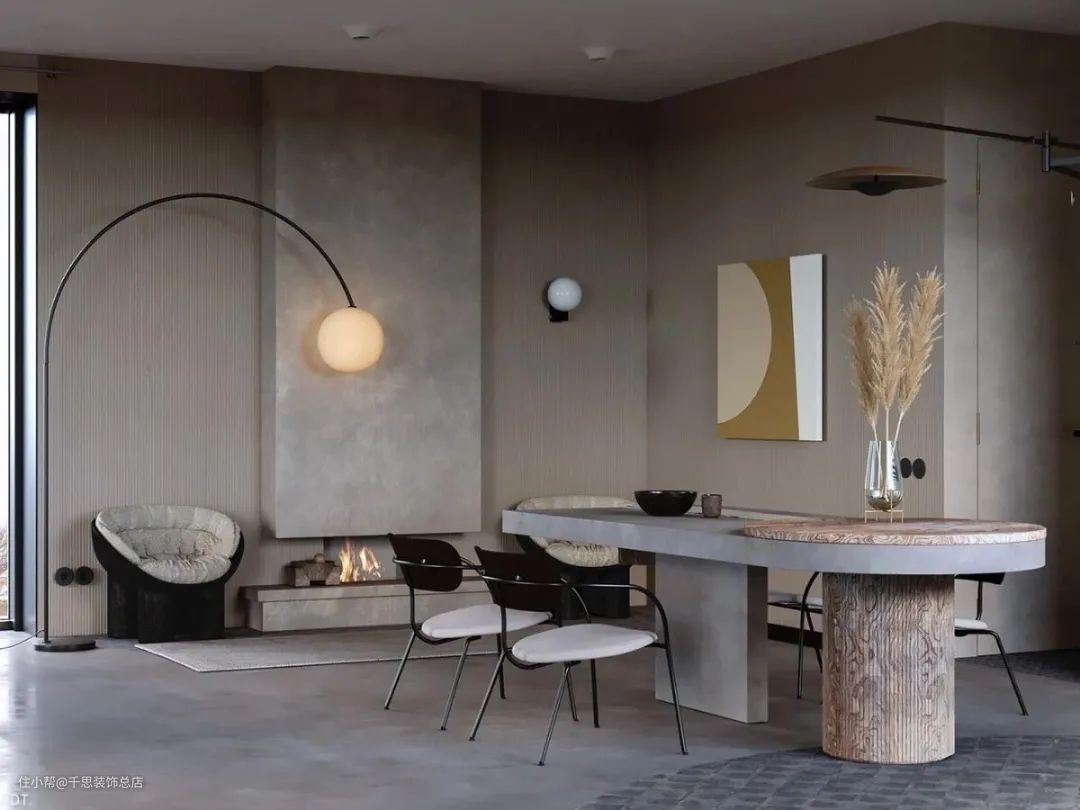 素水泥的色彩一直是家装设计的宠儿,工业风也常常见到它的影子,它本身独特的肌理变化,有种素洁,和极致的简约效果