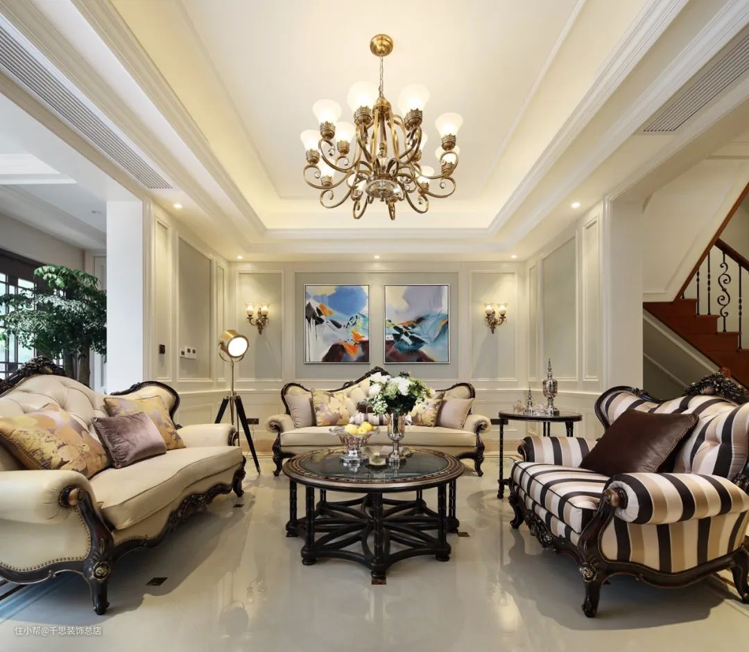 欧美风格设计底色大多采用白色或淡色为主,家具多用白色或深色,但一定要成系列,风格要统一。