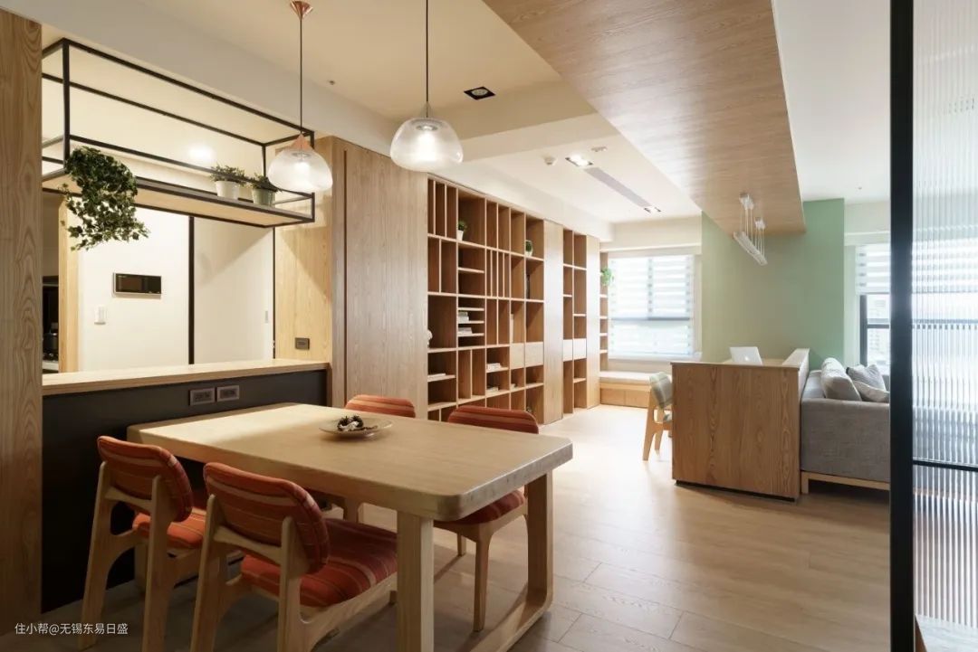 在一些小户型里,餐桌也会被当成临时办公桌,这时中间的凹槽还可放常用的办公用品。