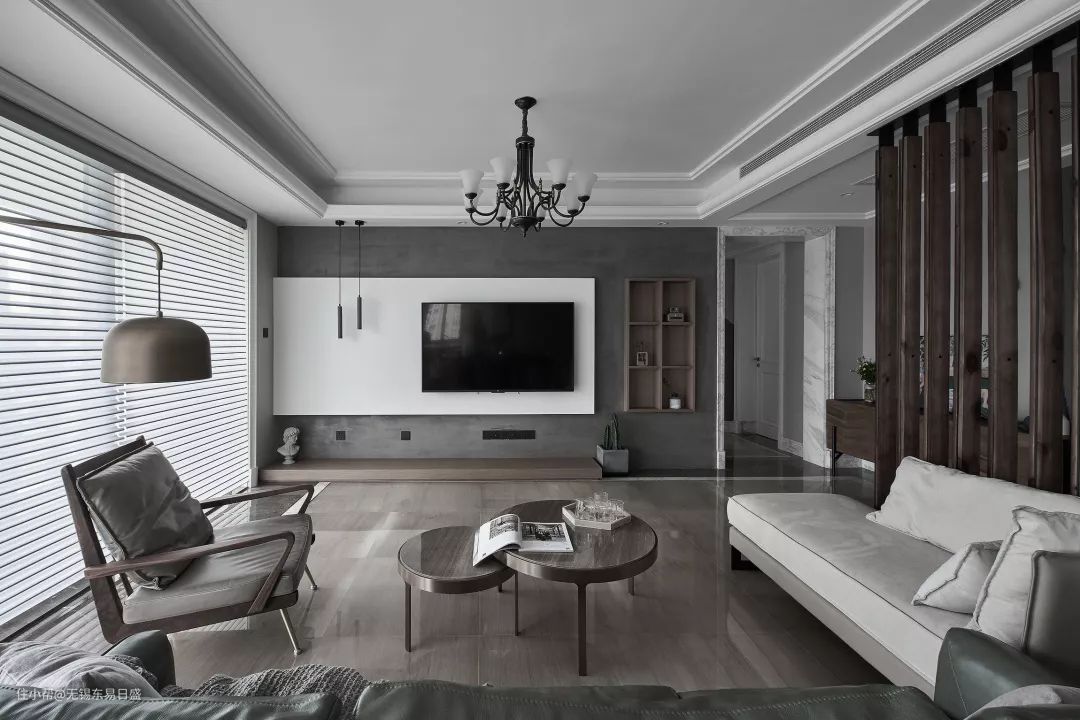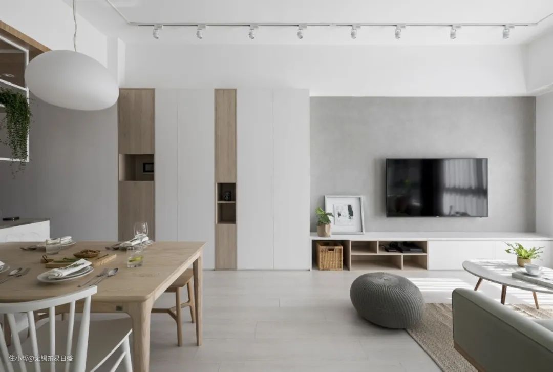 为了提高空间的利用率,可以和其他定制家具成套组合,坚决不浪费空间的每一个角落,定制柜一边做了开放格,和电视上方的开放格及下方柜体相连,活用了犄角旮旯,极大限度地增加了收纳空间。