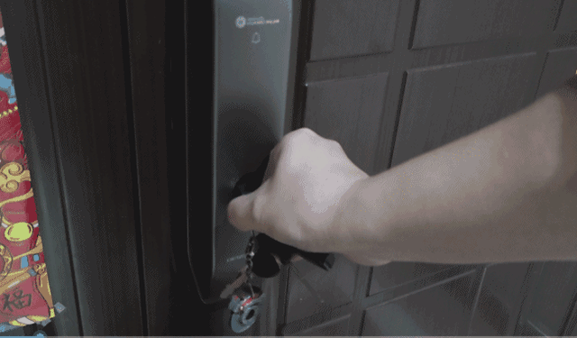 当然,如果指纹清晰度可以的,最方便的还是指纹开锁了,不到1秒的反应,手指触碰到就可以听到门内锁体被带动的声音,然后一拉就可以开门进屋了。几乎是一个非常连贯的动作,不用掏钥匙,也不用掏手机。