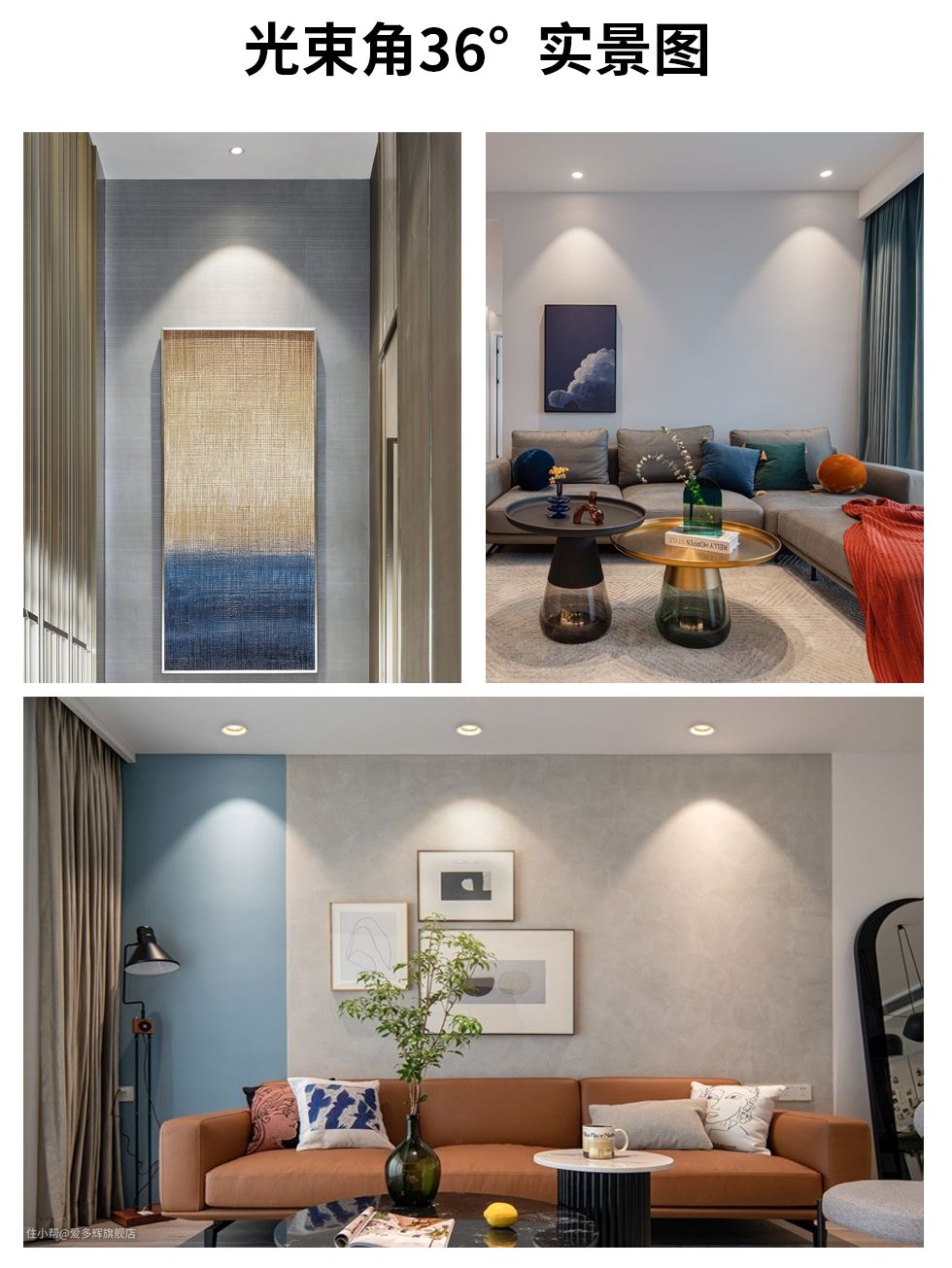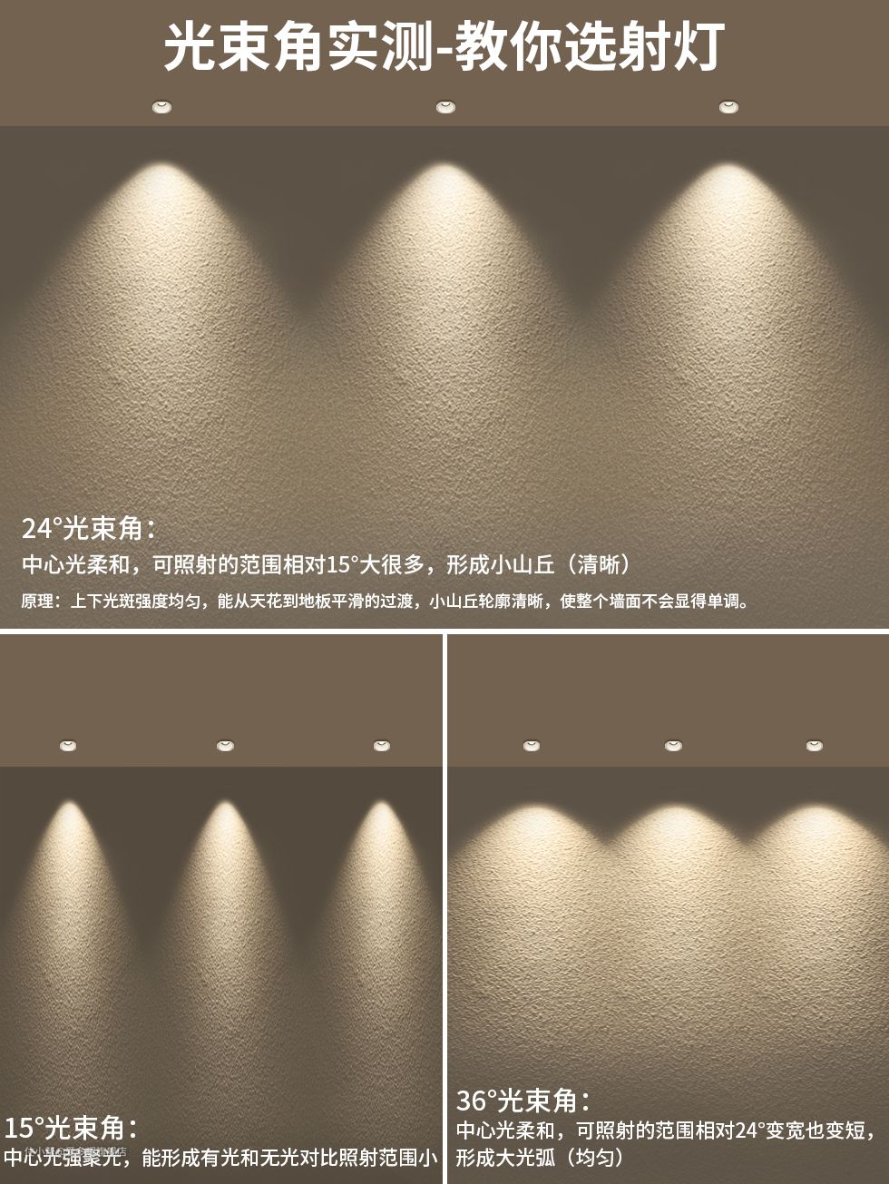 特别说明:如果觉得24°光束角小的话,就离墙20-30cm装,小山丘会变大光弧且光线均匀也够长,这是比36°更好的选择。