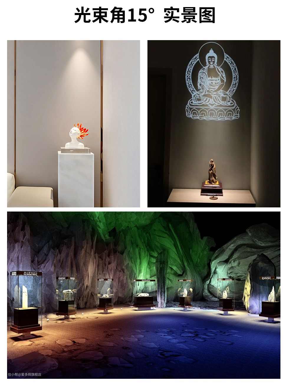 15°光束角:中心光聚光,照射范围小,能形成有光和无光强烈对比。