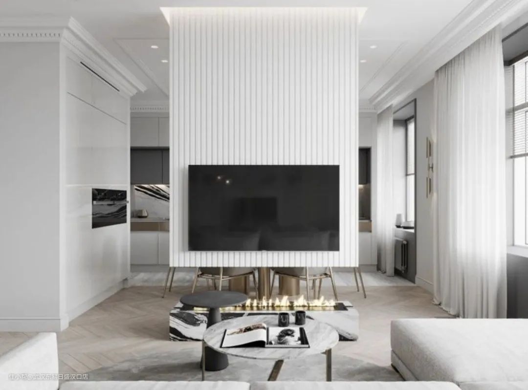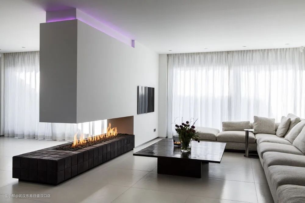 壁炉在当下的设计中也非常常见,壁炉在定制过程中由于本身的功能使用需求,上方柜体都要做成悬浮式,不管是一面靠墙还是全部悬空,效果都非常美观。