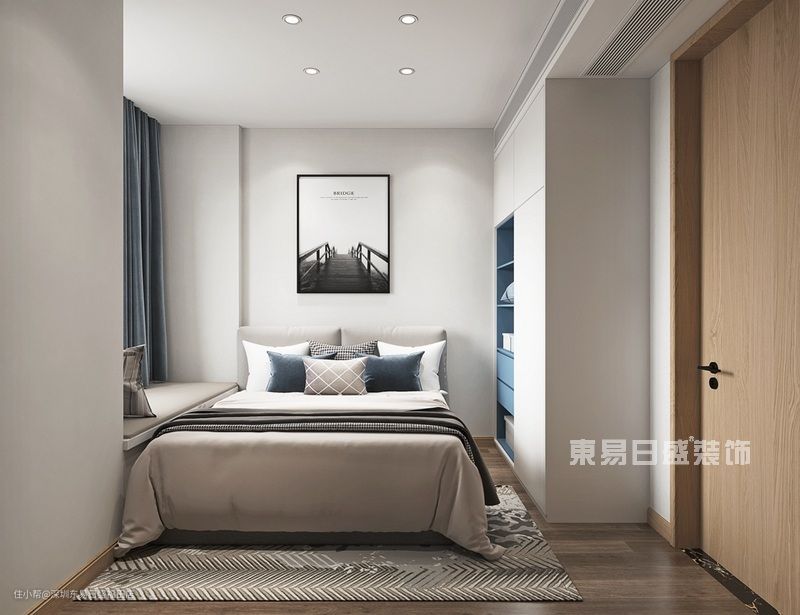 △户型解析:设计师根据业主的需求用侘寂风去改造对整体空间动线进行合理划分,隐藏过于突兀的门洞关系,让空间更加干净,把主卫淋浴间去除,增加步入式衣帽间和储藏间,儿童房借用卫生间部分空间,增加高低床和超长的书桌学习区域,入户门厅拆除厚重的非承重结构,嵌入鞋柜,从而满足家人不同的使用需求。