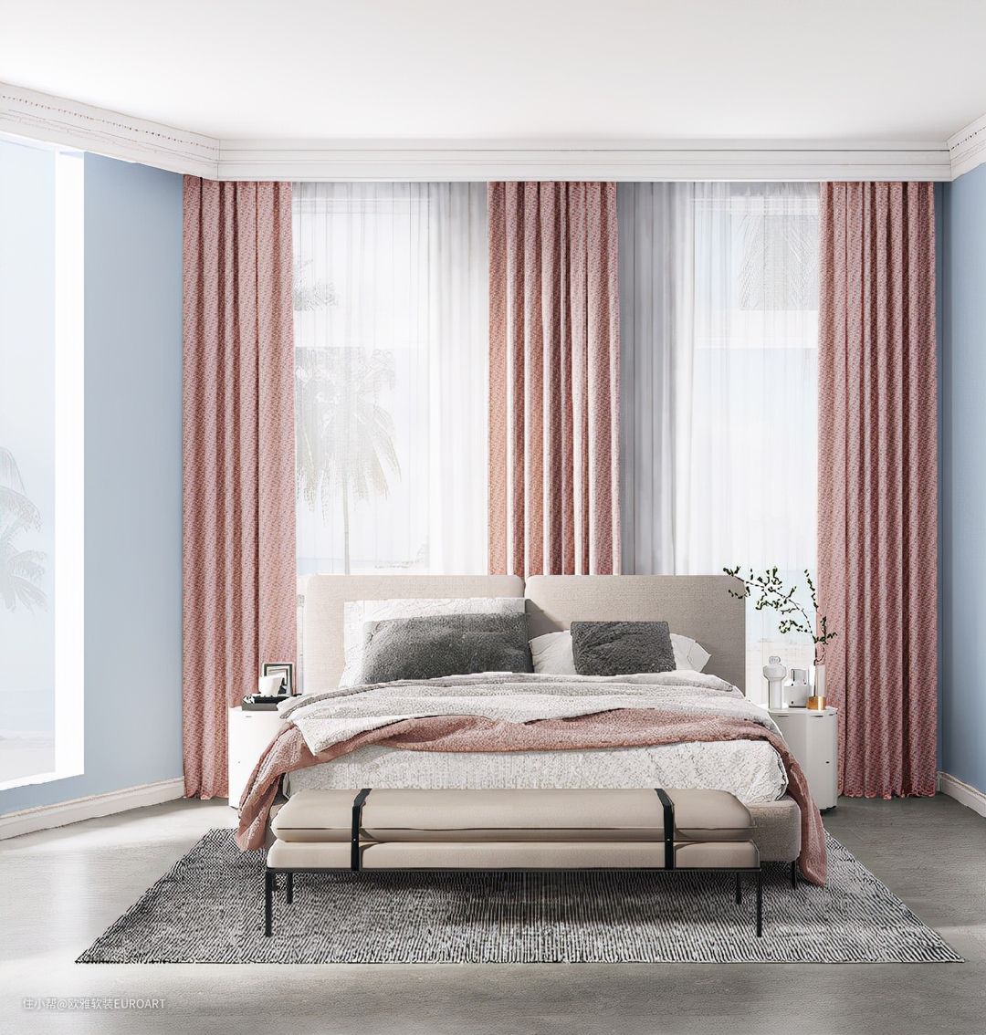为了满足睡眠功能,卧室窗帘的选择更注重实用性,主要体现为自然光线对人体健康的好处。大部分人卧房窗帘的遮光度在70%以上就已经可以免受阳光的侵扰,一觉睡到自然醒。如果需要更好的遮光效果,建议选择加遮光布或者全遮光窗帘。