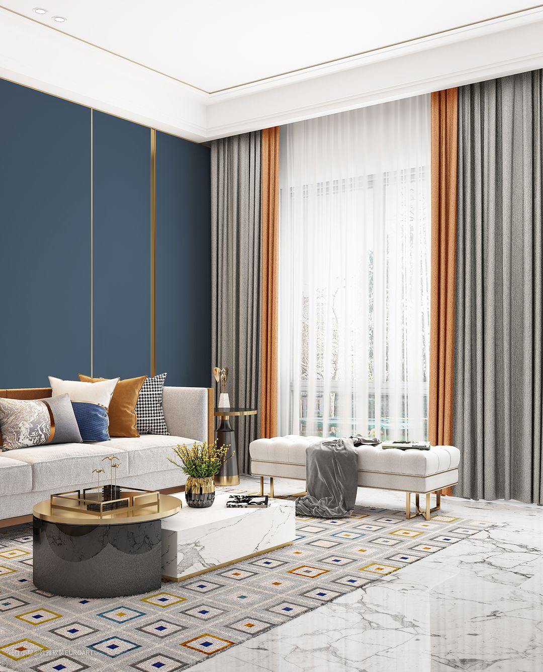 客厅强调足够的自然光线,所以窗帘遮光率则不需要太高,满足隔热、弱化强光的功能即可,一般在40%-60%左右便足够。如果客厅有阳光直晒或西晒,或者需要投影等,可以选择遮光度60%以上的深色窗帘。