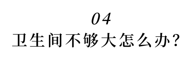 卫生间不够大怎么办?巧用设计来化解。比如淋浴房主要作用就是干湿分离,如果空间太小,可以考虑用浴帘来做干湿分离。