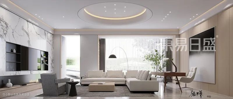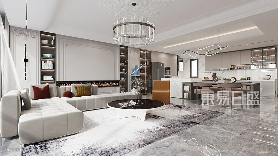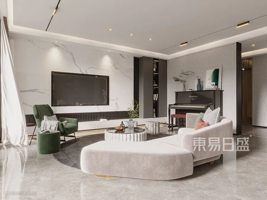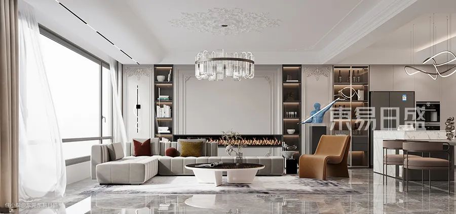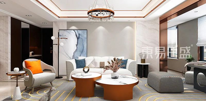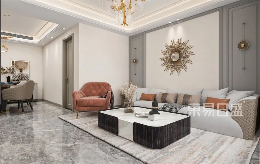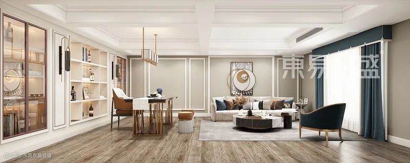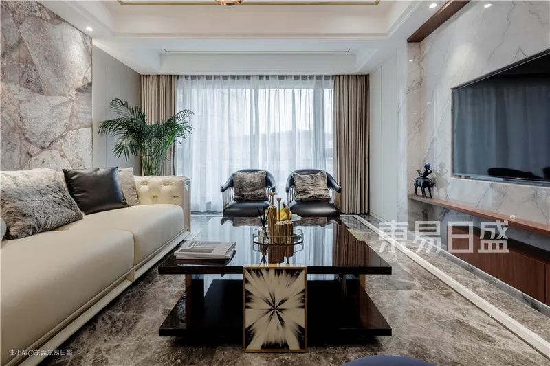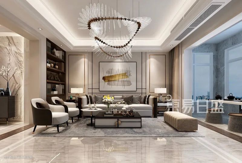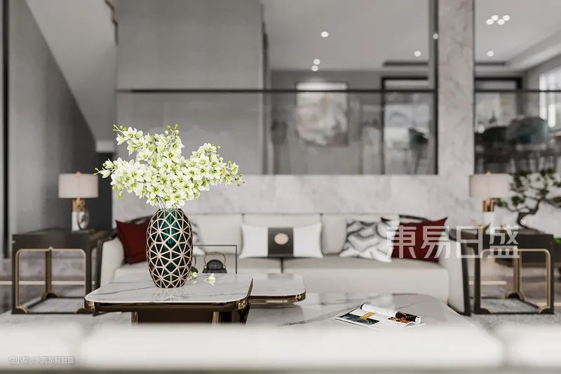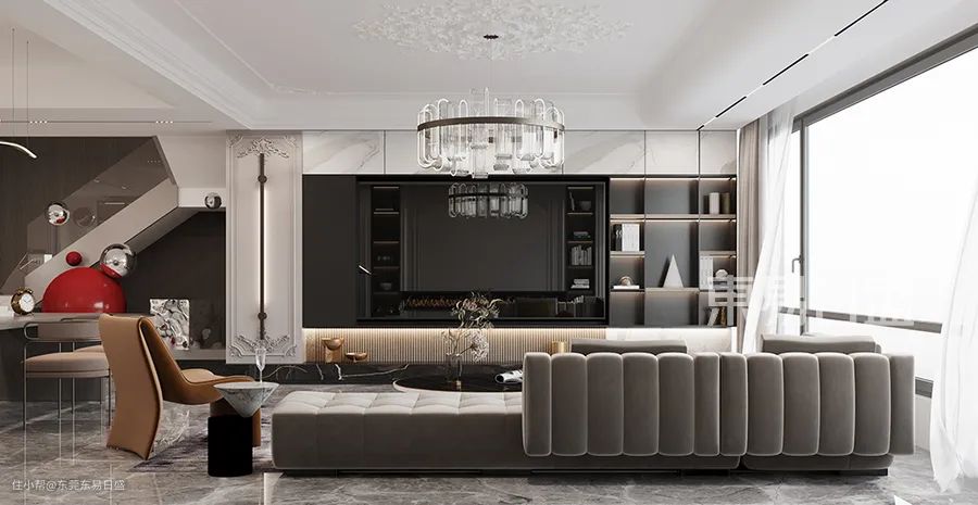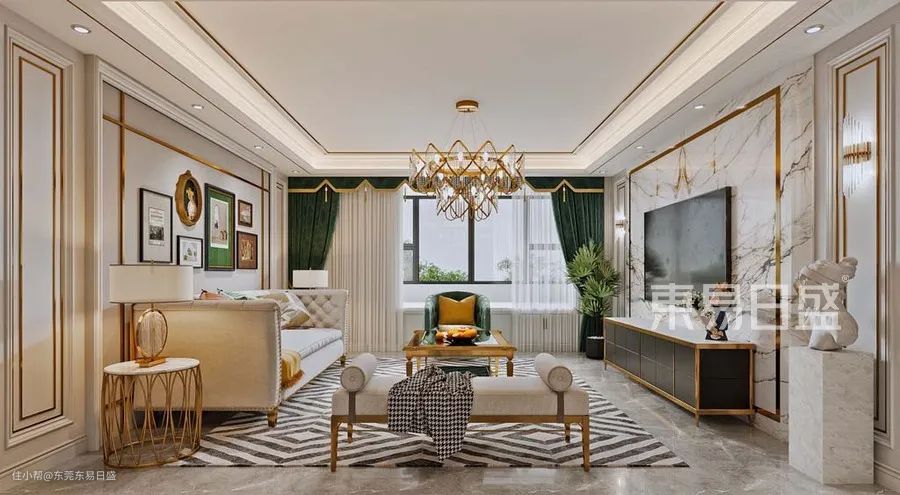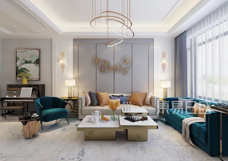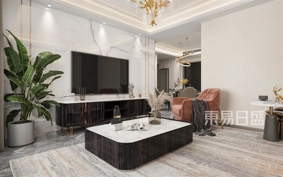 轻奢风格的客厅给人精致时尚,在装修风格上主要以黄铜金属元素相结合为主,营造出一种奢而不华、低调不张扬的氛围。