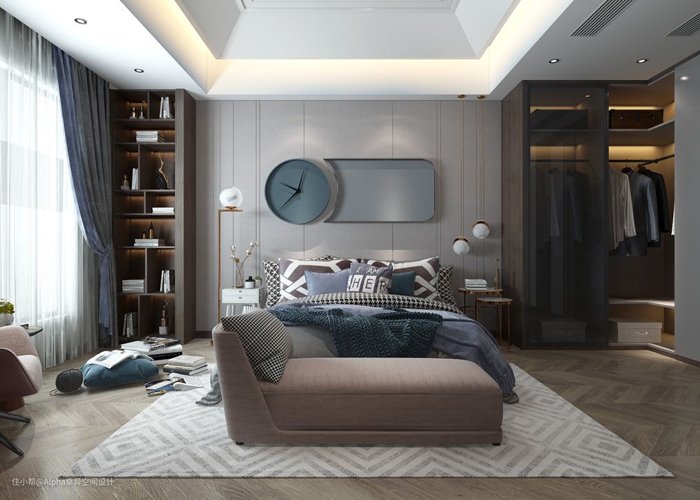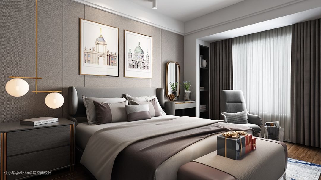 卧室是着重于温度的艺术美学,它的功能主要是睡眠,布置上尽量简单,营造出足够使人放松的环境。